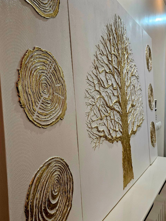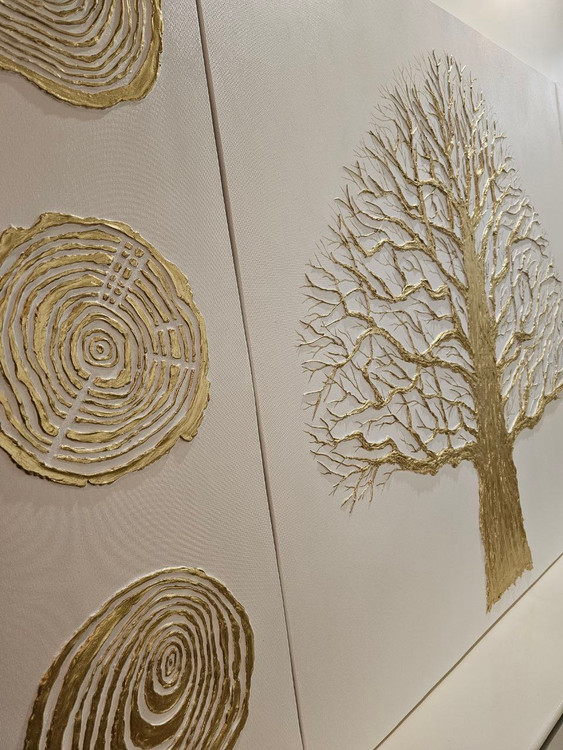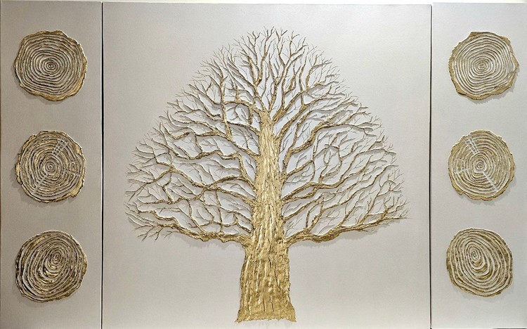ترکیب برجستگی ظریف و درخشش ورق طلا، ای اثر را به نمادی از شکوه و استواری درخت زندگی تبدیل کردهاست.