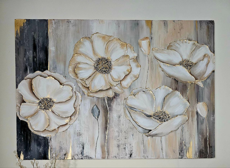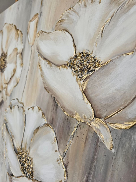 تابلو نقاشی مدرن و دکوراتیو گل برجسته و پتینه