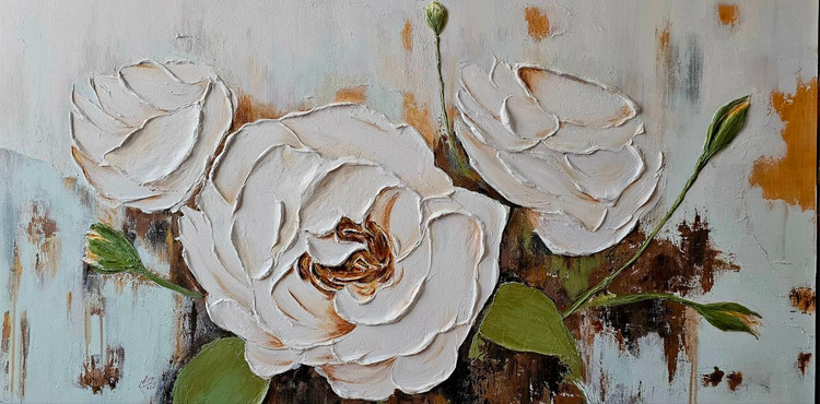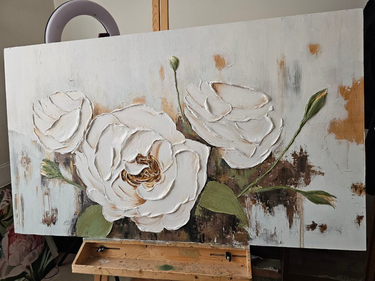 تابلو نقاسی دکوراتیو و برجسته گل سفید