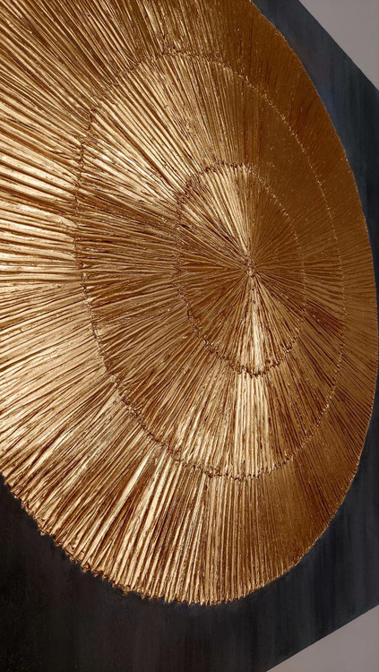 ترکیب برجستگی ظریف و درخشش ورق طلا، این اثر را به نمادی از خورشید و زندگی در کنار هارمونی طبیعت تبدیل کرده است.